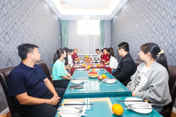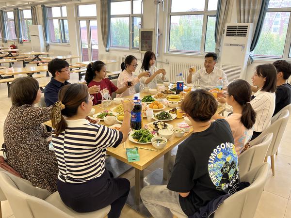 10月1日中午,校领导与两校区学生代表欢聚一堂,开展国庆师生餐叙会,和同学们一起欢度国庆佳节。校领导与同学们拉家常、聊学习、谈理想,了解同学们在校学习生活情况,并为同学们赠送多语种版《习近平谈治国理政》,勉励同学们加强专业学习的同时,要注重思想学习,勉励同学们树立远大理想,把小我融入大我,努力成为具有中国情怀、全球视野、求索精神、跨文化能力的高素质复合型国际化人才。