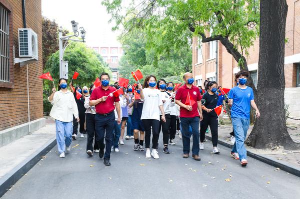 10月的天外,温馨美丽,欧洲语言文化学院组织开展“迎国庆,健体魄”健步走活动,校党委书记殷奇、副校长程国毅与50余名同学一起参与活动。