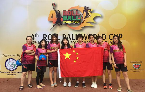 学生参加第四届轮滑手球世界杯大赛
