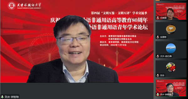 本次论坛以“文明互鉴,文明互译”为主旨,关注非通用语青年教师教学与科研发展,促进中国外语非通用语事业的发展。教育部高等学校外国语言文学类专业教学指导委员会副主任委员、非通用语种类专业教学指导分委员会主任委员姜景奎教授,国务院学位委员会外语学科评议组成员钟智翔教授,天津市教育委员会高等教育处处长徐震,校长陈法春教授、副校长余江教授出席论坛。