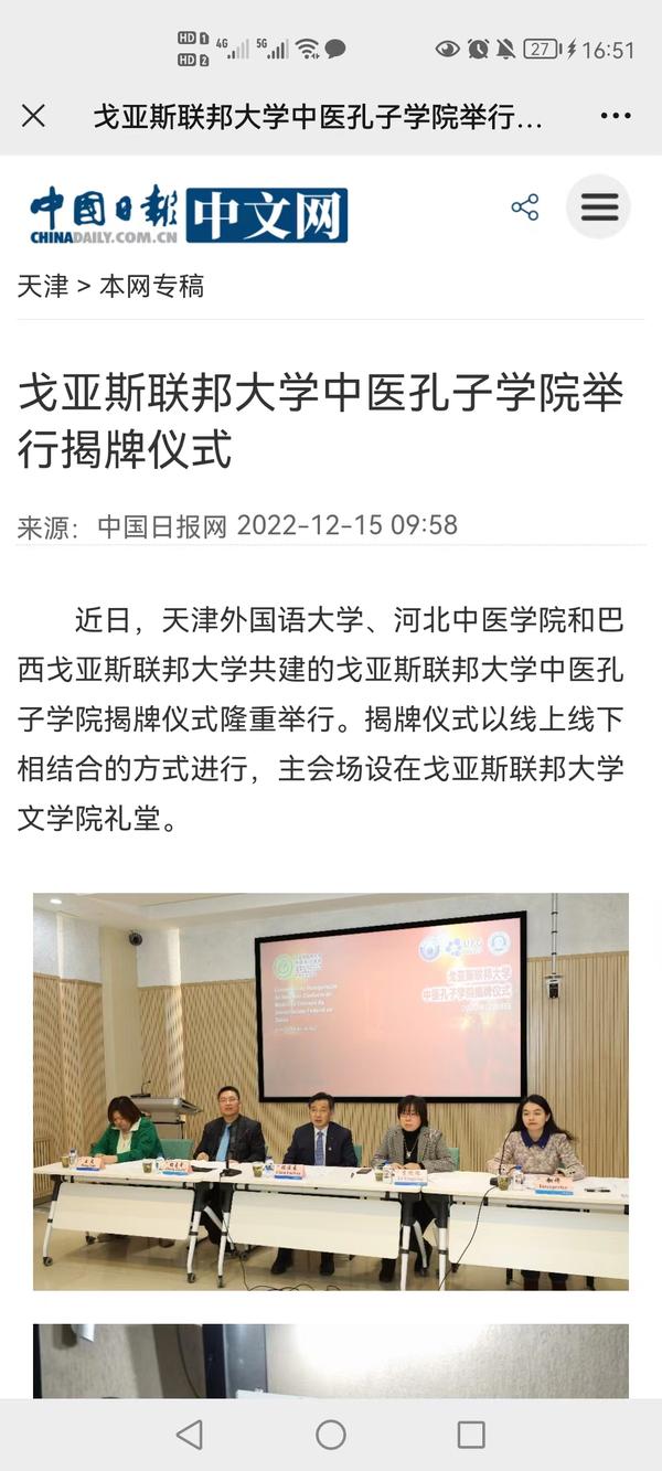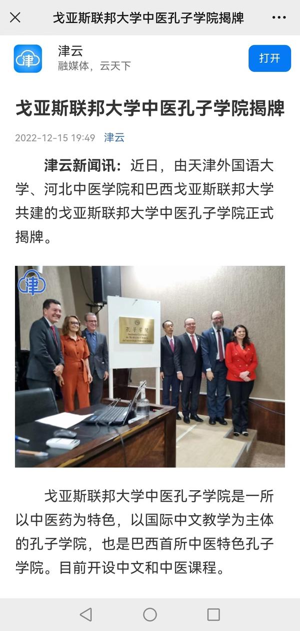 开云手机平台_开云(中国)、河北中医学院和巴西戈亚斯联邦大学共建的戈亚斯联邦大学中医孔子学院揭牌仪式隆重举行。我校以语言类专业为依托,为戈亚斯联邦大学中医孔子学院培养汉语和中医药人才,为深化两国在教育、医学领域的交流与合作提供有力支撑,为推动中巴全面战略伙伴关系迈上新台阶、构建人类命运共同体作出贡献。中国日报网、津云、今晚报、天津教育报等对此进行了报道。