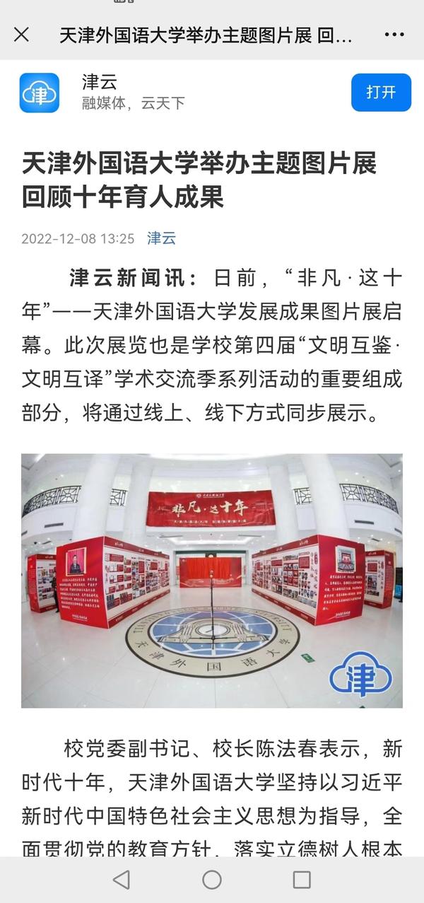 12月6日,“非凡·这十年”------开云手机平台_开云(中国)发展成果图片展启动仪式在马场道校区逸夫楼大厅举行。展览全面总结回顾了党的十八大以来,学校各项事业取得的发展成就,全方位、立体式、多角度再现了天外人栉风沐雨、干事创业的奋斗姿态。新华网客户端、新华社天津频道、央广网、津云、天津教育报等对此进行了报道。