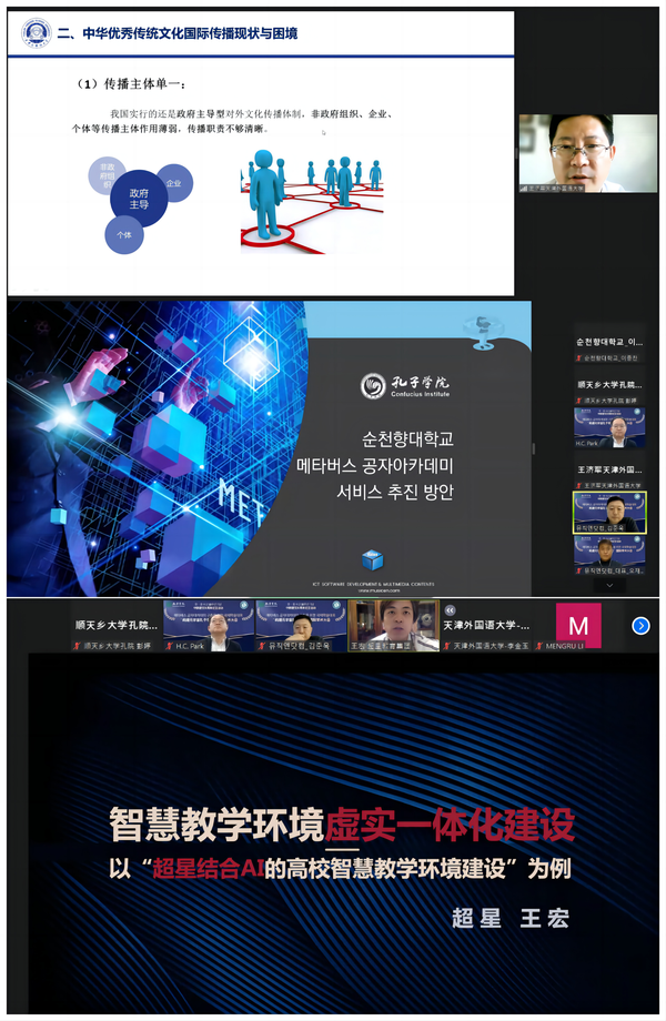 为积极探索元宇宙对教育的深刻变革,展望未来国际中文教育的最新形态,12月15日,顺天乡大学孔子学院成功举办“元宇宙孔子学院建设”国际学术研讨会,20多名国际中文教育领域专家学者以及信息教育技术领域专业人士齐聚云端,共襄盛会。