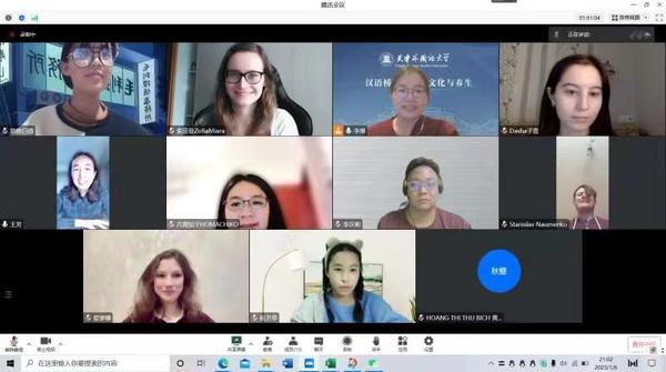 初级班李纯茵老师对学员们认真的学习态度和克服困难的精神给予充分肯定,并在课上展示了优秀结课作业。学员Liza和Victor录制了“八段锦”和“太极拳”视频柔中带刚,开合有序,获得了师生的一致好评。俄罗斯学员Stella分享了学习汉语的故事,“我很喜欢中国的传统文化、历史、美食和中国人民,期待能到中国学习!”她的言语中饱含着对中国文化的喜爱和对中国的向往。乌克兰学员Nastya认为中医非常有意思,她还喜欢中国的古典建筑,想体验中国的春节和中秋节。不少学员都在发言中提到希望“以后来中国学习”,彰显了中华文化正在走向世界,中国优秀文化的魅力已经感染了越来越多的国际友人。