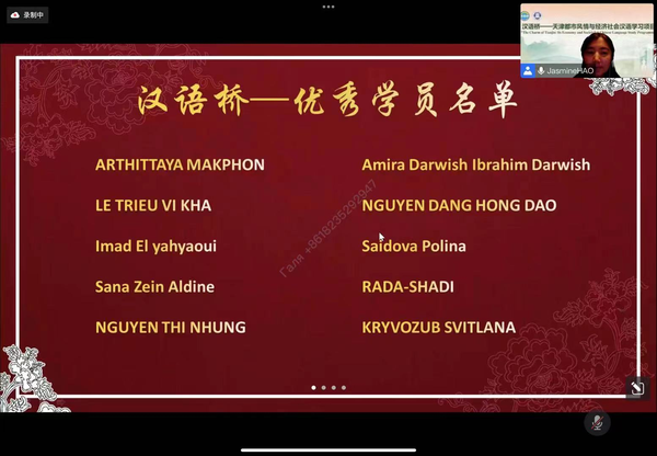 1月13日,由教育部中外语言交流合作中心主办、我校求索荣誉学院承办的“天津都市风情与经济社会”线上交流项目结业仪式顺利举行。结业仪式由求索荣誉学院教师郝卓主持。求索荣誉学院班子成员及师生代表参加结业仪式。