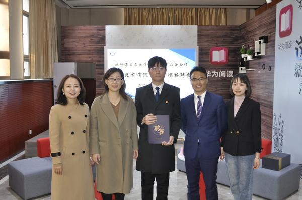 华为运营商BG全球销售部为已签约华为技术有限公司企业BG全球伙伴发展与销售部、2023届葡萄牙语专业毕业生郭天瑞颁发“华为客户经理校园大使”聘任证书。