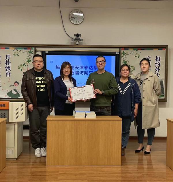 会上进行了泰达集团向学校捐赠图书仪式。
