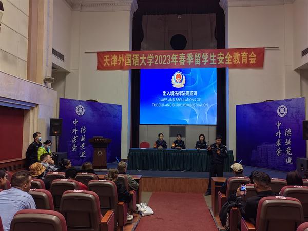 为加强留学生中国法律教育,提高留学生遵纪守法意识和个人安全意识,规范校内外留学生行为,维护安全稳定,3月17日下午,国际教育学院在钟楼报告厅召开了“2023年春季留学生安全教育会”。会议邀请了天津市出入境管理局、天津市公安局河西分局、天津市五大道消防救援站的警官及我校国际交流中心负责人为留学生进行相关法律、消防和住宿安全宣介。会议由国际教育学院副院长代秀敏主持,国际教育学院党总支书记孙倩出席会议并讲话,留学生办公室全体留管干部、在校留学生参加会议。
