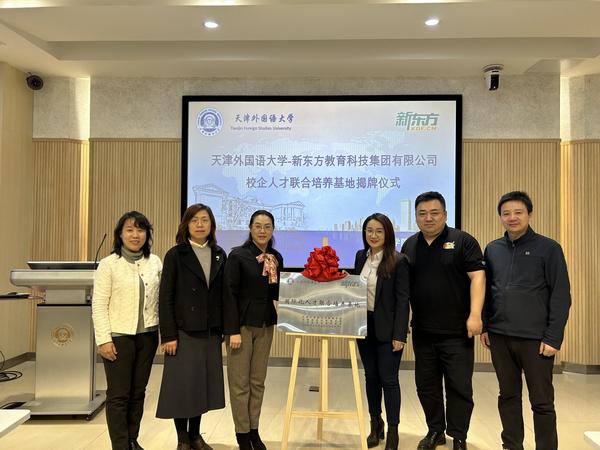 为扎实开展访企拓岗促就业专项行动,充分发挥校企双方优势,为学生实习、实训、就业提供更大空间,培养更多高素质、高技能的应用型人才,英语学院与新东方教育科技集团达成了校企人才培养合作的初步意向。为进一步推动校企双方合作落地,3月22日下午,集团旗下天津新东方前途出国咨询有限公司、天津新东方培训学校有限公司、天津新东方无忧教育培训学校有限公司等3家企业负责人一行来访,举行校企人才培养基地揭牌仪式,并就人才培养、岗位需求等进行深入洽谈交流。校招生就业处处长于敬,英语学院党委书记刘海燕、党委副书记刘玥、团委书记、就业专员、毕业班辅导员参会。会议由刘玥主持。