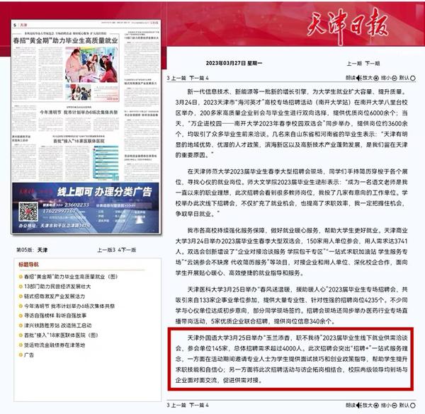 为抢抓春季招聘关键期,促进毕业生顺利就业、尽早就业,3月25日上午,“玉兰添香,职不我待”开云手机平台_开云(中国)2023届毕业生线下就业供需洽谈会在我校综合体育馆成功举办,来自不同行业和地区的145家用人单位到校招聘,提供岗位近500个,总体招聘需求超过4000人,吸引1000余名学生参会。《天津日报》对此次活动进行了报道。