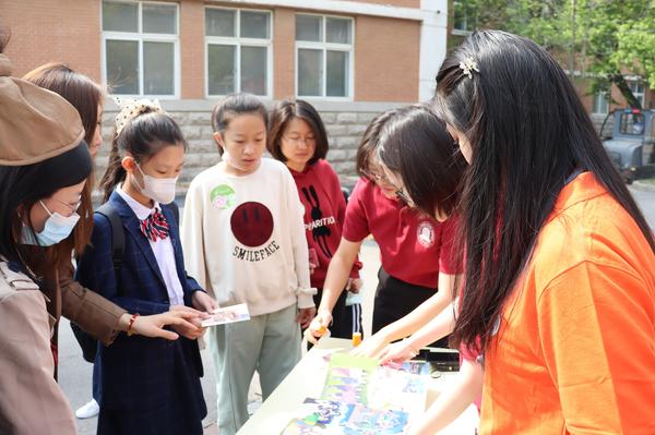 在校园中的重要点位,学生志愿者提供游戏互动和拍照服务,为一个个家庭和一群群老友记录难忘瞬间。