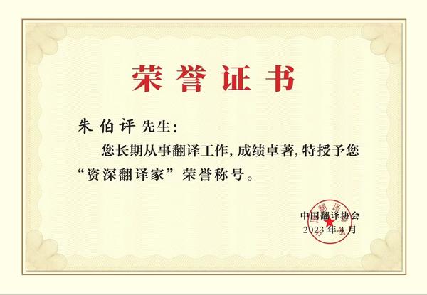 “资深翻译家”是中国翻译协会于2001年设立的荣誉称号,颁授给在外事外交、对外传播、社会科学、军事、科技、文学和民族语文翻译等领域作出突出贡献、从事翻译工作30年以上、年满65岁的翻译家,是广大翻译工作者的极高荣誉。该项表彰活动一直受到社会各界的广泛关注和认可。
