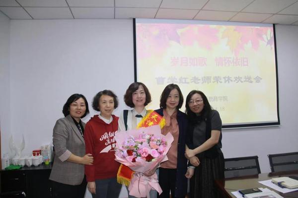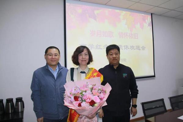 全体教职工为曹学红老师送上精心准备的鲜花和工作照片,并一起合影留念,衷心祝愿曹老师退休后的生活更加多姿多彩,身体健康,幸福美满!