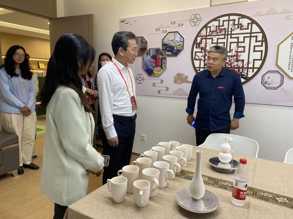 会后,我校一行走访了温州大学校史博物馆、浙江传统戏曲研究与传承中心、温州市发绣研究所、激光加工机器人国际科技合作基地、校友之家等,深入了解温州大学的发展历史、文化传承以及近年来在提升高等教育内涵式发展水平、推动“产城教”全链条融合发展、擦亮开放合作特色化办学品牌等方面取得的显著成就。在创新创业学院和众创空间,云慧科技、焕新科技、创源科技等创业团队负责人分别介绍了运行情况。余江与师生开展座谈交流,观摩创业项目路演,并详细询问了温大关于创新创业教育的开展情况。