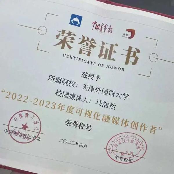 我校高浅予同学当选中青校媒(天津)第十六届主席团活动部分管主席
