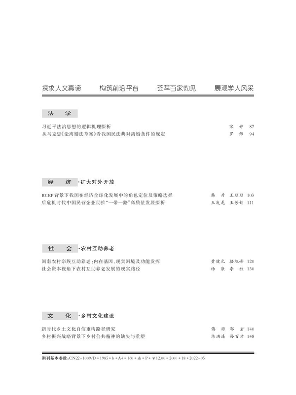 学术论文《习近平法治思想的逻辑机理探析》系作者主持的国家社会科学基金项目“马克思主义法治思想中国化的发展历程与基本经验研究”(20BKS019)的阶段性研究成果,全文共1.2万字,发表于期刊《长白学刊》2022年第3期。《长白学刊》为北大核心来源期刊、中国人文社会科学期刊AMI综合评价(A刊)核心期刊,ISSN号为1003-5478。