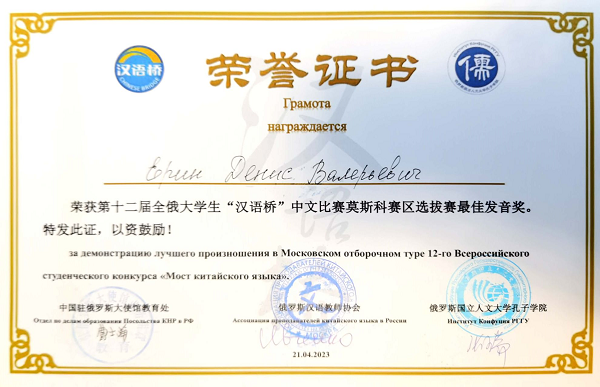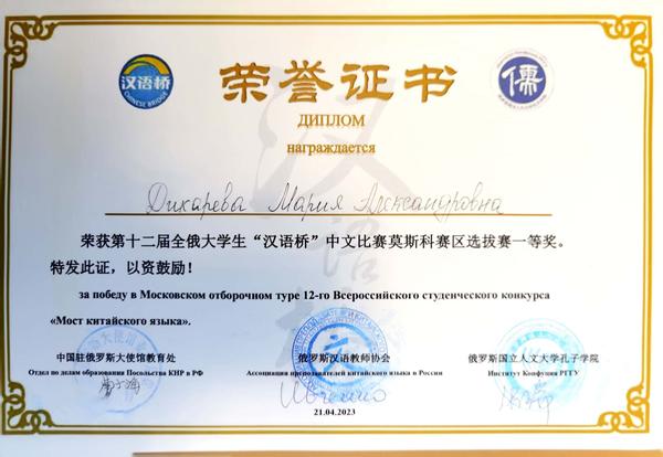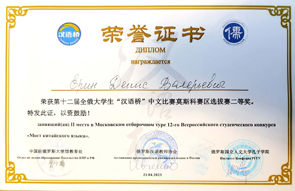 自今年3月初接到“汉语桥”比赛的通知后,按照比赛规定及相关要求,在中、俄方院长的大力支持下,中方教师开始对参赛选手进行专项训练。今年线下参赛人数,较去年14位线上参赛的人数增加了三分之一。经过激烈角逐,伏师大孔子学院派出的两位选手取得历年参赛的最好成绩,并将代表莫斯科赛区参加5月在伊尔库茨克举办的第十二届全俄“汉语桥”大学生中文比赛决赛。