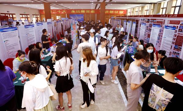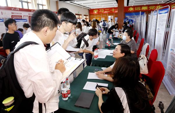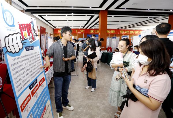 周红蕾、梁春早等校、区领导来到招聘会现场,了解企业用人需求,询问工作待遇和发展前景。招聘活动期间,区、校、企三方于逸夫楼莎翁厅同步召开“成就河西·校企携手”校企对接座谈会。