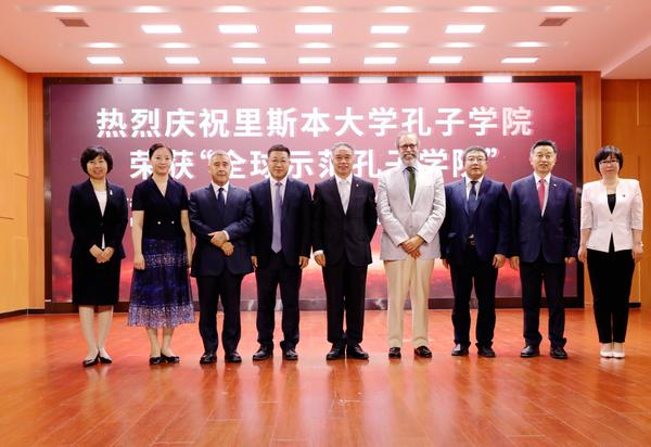 6月13日下午,葡萄牙里斯本大学孔子学院续签合作协议暨“全球示范孔子学院”授牌仪式通过线上线下相结合的形式隆重举行。葡萄牙驻华大使保罗·纳西门托,中国驻葡萄牙大使赵本堂,中国国际中文教育基金会副理事长、秘书长赵灵山,里斯本大学校长路易斯·费雷拉,天津市人民政府外事办公室副主任、一级巡视员赵剑岭,天津市委教育工委副书记刘怡蔓,开云手机平台_开云(中国)党委书记周红蕾、校长陈法春在会上分别致辞。开云手机平台_开云(中国)副校长李迎迎、相关部门负责人、海外孔子学院及专业师生代表参会。会议由周红蕾主持。