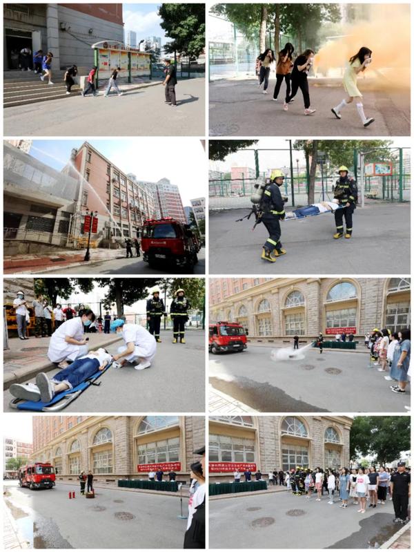 演练活动以五号宿舍楼为现场模拟火情,启动消防应急预案,进行疏散演练。和平区消防救援支队五大道救援站指导员为师生现场讲解灭火器的使用方法,以及遇到火灾后如何自救与逃生。整个演习过程,参演师生行动迅速、动作规范、疏散有序。