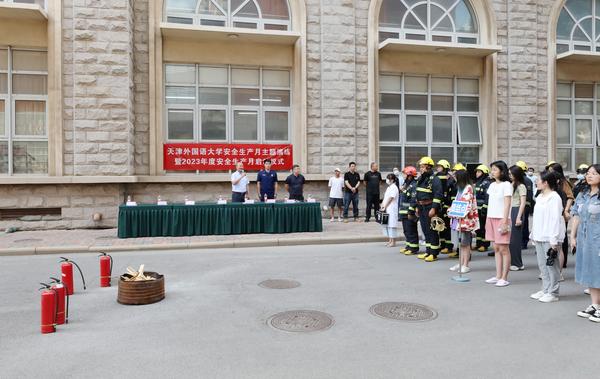2023年6月是第22个全国“安全生产月”,为深入贯彻市委、市教育两委相关要求,切实做好学校安全工作,强化消防安全意识,积累集体疏散、消防救援、应急组织等实战经验,6月12日下午,我校在马场道校区组织开展“2023年安全生产月启动仪式暨安全生产月主题演练”活动。校长陈法春、副校长程国毅,河西区消防救援支队、和平区消防救援支队部分指战员,学校相关部门及各学院近300名师生共同参加了此次演练。