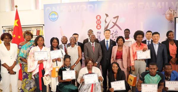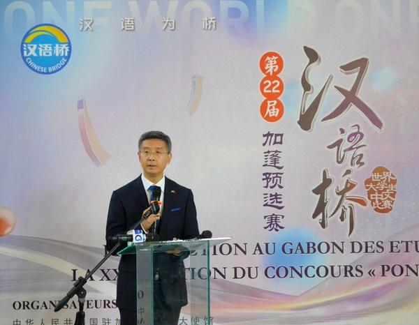 李津津大使在致辞中表示,今年是中加建交49周年,也是邦戈大学孔子学院成立的第5个年头,越来越多加蓬青年学子选择学习汉语,对中国语言文化的了解和热爱不断加深。汉语是探索中华文化魅力之桥、是促进中加互利合作之桥、是深化两国文明交流互鉴之桥。中方愿同加方一道,以汉语学习为桥梁,进一步增进青年、教育、智库等各领域人文交流,推动两国全面战略合作伙伴关系不断发展。