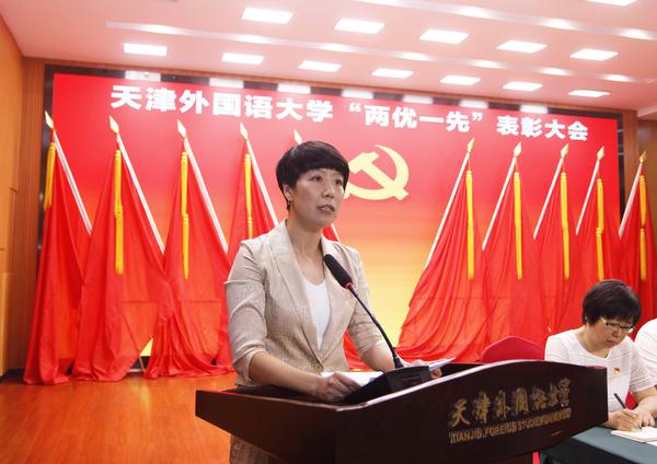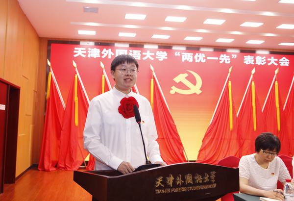 作为获奖先进个人和先进集体代表,“光荣在党50年”老党员赵秀珍,国际传媒学院党委书记焦宁、马克思主义学院直属党支部副书记高立军、欧洲语言文化学院教师党员王烁、国际商学院学生党员刘鸿飞先后发言,讲述了他们铭记党员身份、履行岗位职责、奋力争先创优的先进事迹。
