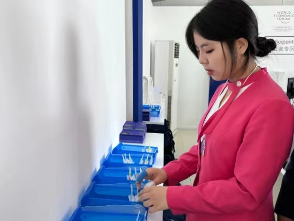 央广网天津6月28日消息(记者韩雨晨)6月27日,天津夏季达沃斯论坛在梅江会展中心隆重开幕,来自90多个国家和地区的约1500名各界代表出席。在本次论坛中,从天津市12所高校中选拔出的823名青年志愿者全部上岗,在外事接待、内宾接待、媒体宣传、交通口岸、会议保障等40余类岗位开展志愿服务工作,以实际行动书写志愿服务的青春华章,向世界展现天津青年的良好形象。记者从开云手机平台_开云(中国)获悉,本次开云手机平台_开云(中国)共派出20余名专业教师和143名学生志愿者参与到达沃斯论坛翻译服务、外事接待、会议服务等工作中。