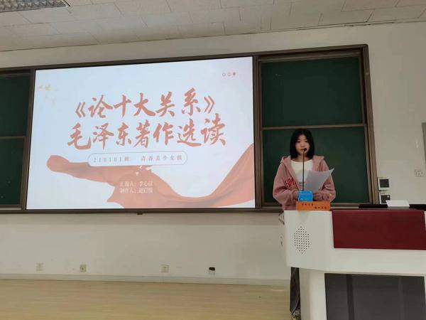 为深入学习贯彻党的二十大精神,推动学习贯彻习近平新时代中国特色社会主义思想主题教育走深走实,纪念毛泽东同志诞辰130周年,从一代伟人著作中汲取力量,奋斗新时代,提升思政课教学质量和水平,5月以来,马克思主义学院“毛泽东思想和中国特色社会主义理论体系概论”课教研室在2021级全体学生中开展了“传承·奋斗”毛泽东著作选读展示大赛实践教学活动。