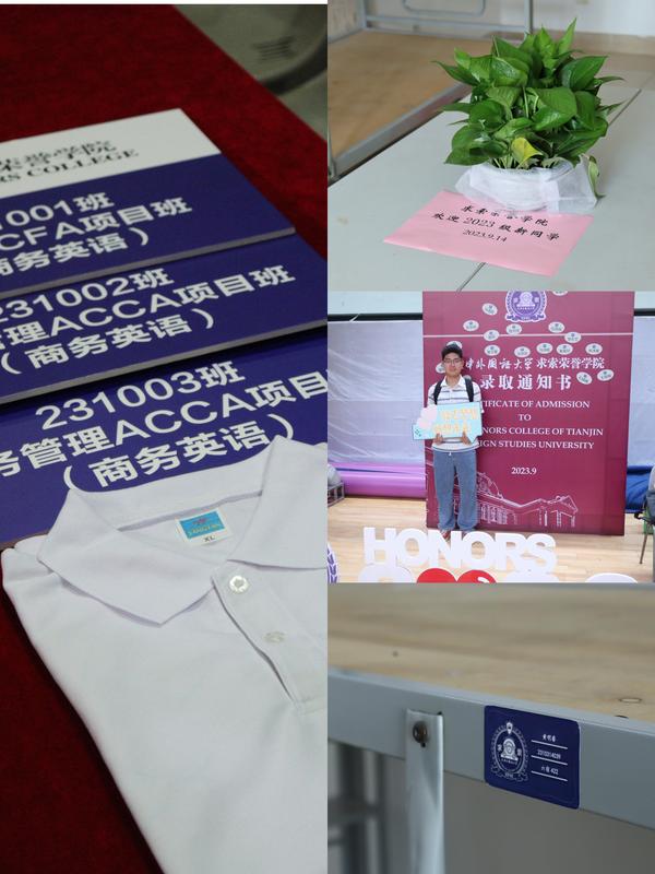 金秋接果实,求索迎新员。同学们入校后,由志愿者学姐带领进行入学小仪式。66名新生领取自己的名牌,骄傲地贴满整个录取通知书。除了定制文化衫以外,宿舍的门上,是求索荣誉学院热情迎接新生的标语;宿舍内一盆顽强生长的绿萝与同学们一同坚守梦想;窗明几净的宿舍床头,每位新成员的姓名卡、文件袋内完善周详的入学指南都在为同学们增添归属感,莘莘学子与天外的故事从此刻正式开始。