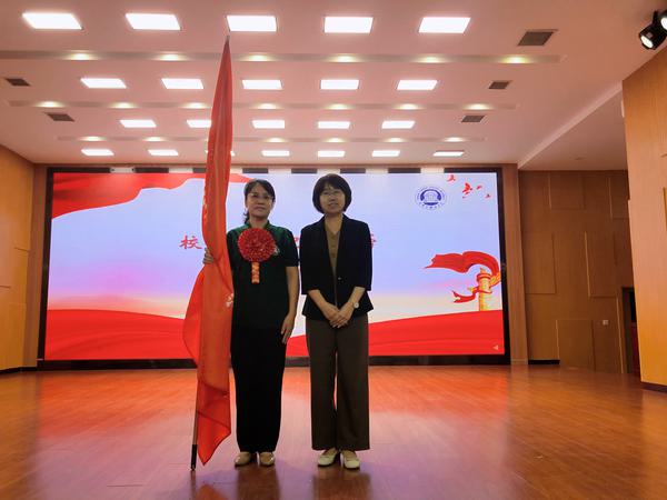 校党委书记周红蕾向支教团授旗