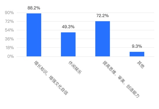 中国青年报·中青校媒的调查结果显示,88.22%的受访大学生认为参观博物馆可以增长知识、增强文化自信,72.20%认为可以提高思维、审美、创造能力。