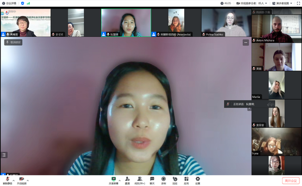 张占奇向学员们介绍了我校及求索荣誉学院的基本情况和办学特色。他表示,求索荣誉学院精心打造的云课堂,将带领学员游览天津的现代都市风情景观,深入了解天津的历史文化、经济发展情况。衷心祝愿学员们能够学有所获,欢迎大家有机会来中国、来天外学习生活。