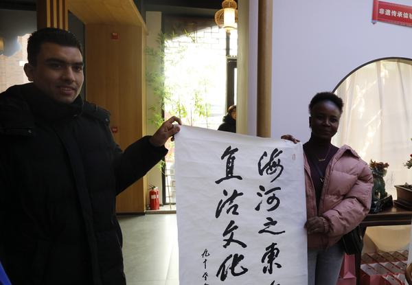 来自马里的迪亚罗对天津文化非常感兴趣,他说:“我认为,相声是中国独一无二的幽默形式,它深深地吸引了我,让我在北京毕业后沿着相声流行的路线来到天津继续学习汉语,探寻中国传统曲艺的艺术魅力。但是经过今天的参观体验,我发现天津文化不仅仅是相声,各种非遗项目也有着深厚的历史文化底蕴,而且这些古老的非遗文化结合了新时代元素,在人们的生活中彰显了新的活力。”