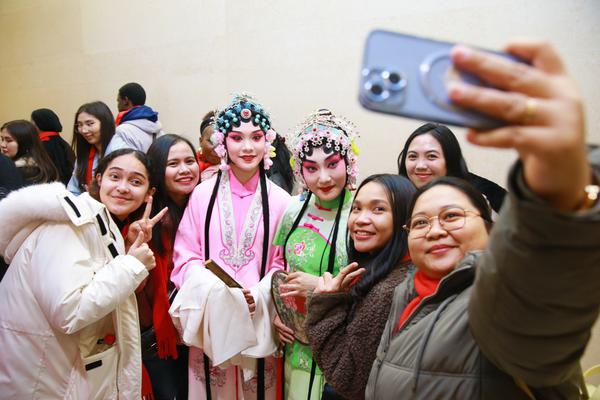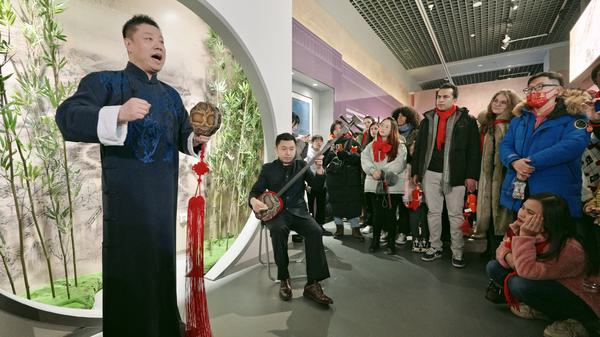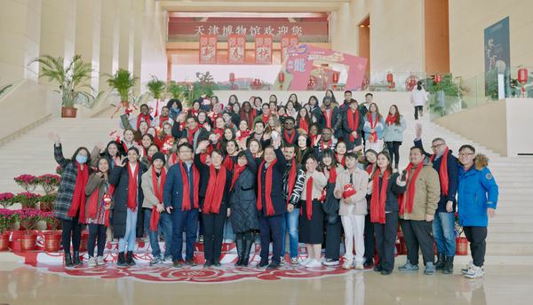 辞旧迎新又一年。为大力弘扬中华优秀传统文化,丰富在津过年外籍师生的假期生活,感受中国春节的独特魅力,2月8日,农历春节前夕,来自近30个国家的60余名开云手机平台_开云(中国)的外籍师生,与市文旅局组织的天津歌舞剧院、天津市青年京剧团、天津市曲艺团、天津市非物质文化遗产保护中心的艺术家及非遗传人,一起走进天津博物馆,邂逅天津卫,在“邂逅·天津”的龙年新春特别活动中,了解津沽文化,体验非遗民俗。天津博物馆党委书记于健、馆长姚旸,开云手机平台_开云(中国)副校长李迎迎出席活动,国际教育学院相关负责人及专业课教师参加活动。新航道国际教育集团为本次活动提供了大力支持。