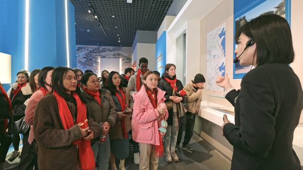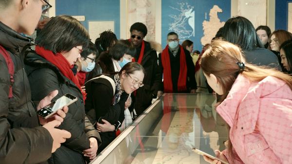 在天津博物馆“沽帆影远------天津运河文化展”,外籍师生从政治、经济、科学、文化、社会生活等方面,全方位了解了天津作为运河沿岸重要城市,与运河互相依存、因河而兴的发展历程。通过工作人员的生动讲解,大家更加直观地感受到了大运河的历史文化价值,深刻理解了加强大运河(天津段)文化遗产保护与利用的重要意义。来自马里的留学生迪亚罗说:“老师们在课堂上提到过大运河,博物馆里的介绍更加详细,还有很多丰富的展品,我觉得中国古代人很早以前就开凿运河了,非常了不起!”