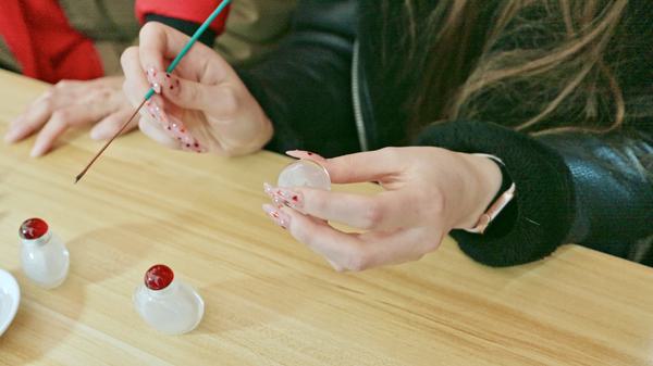 看完精彩的演出,尚记真丝绣绒制作技艺的手工绒花、葫芦庐葫芦制作技艺的葫芦烙画、津派王氏内画等民俗非遗展示与体验,也让外籍师生们眼前一亮。师生们还体验了一把京剧勾脸,了解了京剧艺术的绚丽多彩和博大精深。在体验葫芦烫画时,外籍师生们小心地操作着手中的电烙笔,在大小不一、形态各异的葫芦上仔细地移动着,不多时,一幅幅风格迥异的烙画就烙在了一个个葫芦上。来自哥伦比亚的留学生路依莎在葫芦上烙上了一个“福”字后激动地说:“老师说‘葫芦’的谐音是‘福禄’,我就写了个福字,希望新的一年自己和家人都能有满满的福气。”