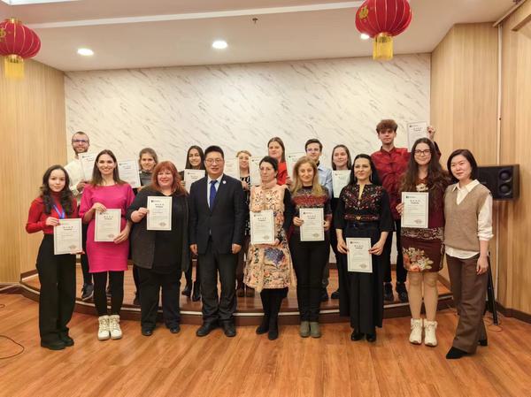 在结业仪式上,国际合作与交流处处长张占奇简要回顾了研修班的课程安排,对学员们认真研修的精神表示赞赏,希望未来能够加强与各位本土中文教师所在学校的交流与合作,希望更多的保加利亚友人来天外学习交流,赓续与中国、与天津、与天外的友好情谊。17位学员纷纷表示,通过全方位的体验和沉浸式实践学习,不仅对中国文化有了更全面的了解,更深切感受到了中国尤其是天津地域文化的深厚底蕴和独特魅力。通过此次研修,在提升自身语言技能的同时,还增进了两国间的了解和友谊。