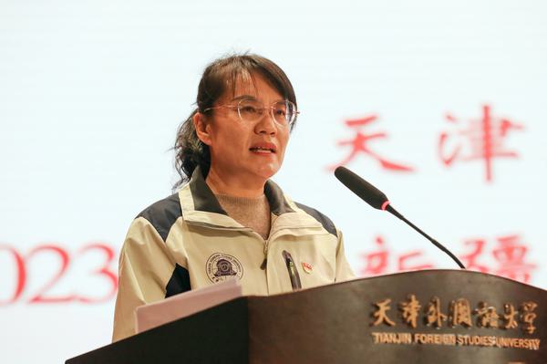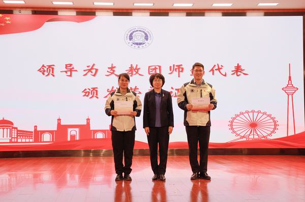 周红蕾代表校党委向支教团全体师生辛勤的付出和取得的成绩表示由衷感谢和热烈祝贺。她指出,32名支教团师生在基层一线实践中经受磨炼、增长才干,为提升西部地区教育质量、助力乡村振兴作出了贡献,展现了天外人的气质和担当。她对所有志愿投身支教事业的师生提出三点希望:一是提高政治站位,深入把握教育援疆工作的重大意义,在全面贯彻落实新时代党的治疆方略中展现“天外之为”;二是矢志接续奋斗,把满腔热忱转化为传播知识、传播思想、传播真理的实际行动,赓续文化润疆“天津模式”的精彩华章;三是践行善作善成,打造天外特色语言文字品牌,助力我国国际传播能力提升。她勉励同学们秉承“中外求索 德业竞进”校训精神,以语言相通促进心灵相通,以专业之长助力实践之行,为实现“中华民族一家亲,同心共筑中国梦”矢志奋斗,以优异成绩为建校60周年献礼!