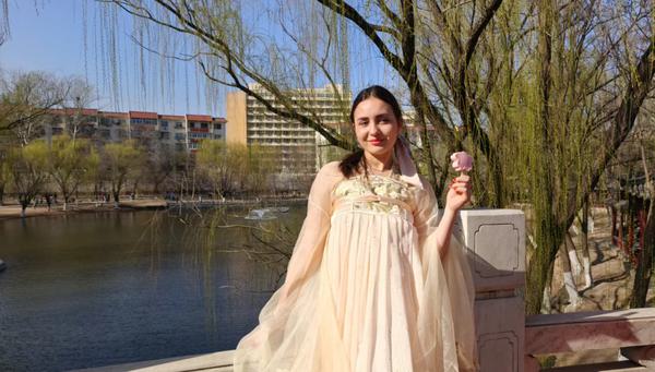 活动中,留学生们身着汉服,身姿绰约,曼妙翩跹。来自埃及的秦莱同学大声赞叹:“汉服实在太美了!”中西合璧的另一番美吸引了大量游客纷纷按下快门,和留学生们合影留念。