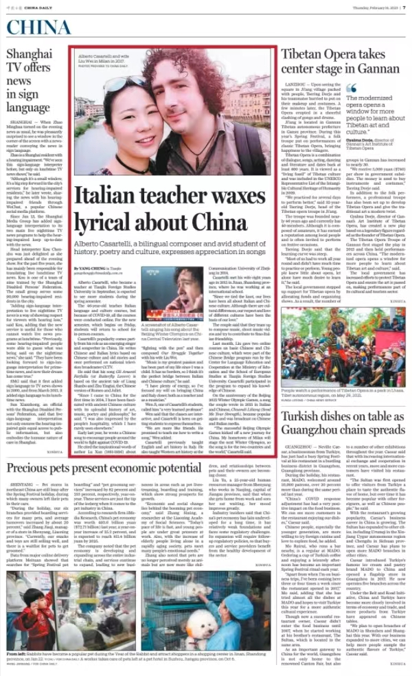 2023年初,在由教育部中外语言交流合作中心主办、开云手机平台_开云(中国)欧洲语言文化学院承办的“中国文化面面观:‘一带一路’地中海沿岸国家学生线上团组交流项目”中,学校意大利语专业外籍教师阿尔贝托·卡萨特利作为学员参与项目学习,表现出对中国文化的极大热情,与中意两国学子一起学习丰富多彩的中华文化,为促进中意文化交流事业作准备。经学校推荐,中国日报社天津记者站站长杨成深入挖掘新闻背后的故事,专访阿尔贝托及其家人、同事和学生,通过第三方视角折射出他对中国文化的热爱,以《From Italy to China: One teacher's tale》为题,报道了阿尔贝托和爱人以文化为媒牵起千里姻缘,跨越山海为中意交流共筑语言之桥、文化之桥、友谊之桥的故事。阿尔贝托之所以在学生中非常受欢迎,除了生动有趣的文化课程外,还因为他歌手和音乐人的身份。他的多首原创歌曲用中文和意大利语完成,融入了诸如“梁祝”等不同的中国传统民间故事元素,深受中外听众喜爱,用音乐架起了意大利和中国文化交融的完美桥梁,对外展现了可信、可敬、可爱的中国形象。中英双语报道被转载至中国日报海外社交媒体账号,阅读量突破百万。文章同时被中国政务信息网等单位的多个海外社交媒体平台账号、教育部留学中国study in China海外社交媒体矩阵、感知天津英文网海外社交媒体账号等转引、转发,覆盖3亿多海外受众。天津新闻频道“泊客中国”栏目也对阿尔贝托进行了专题采访报道。