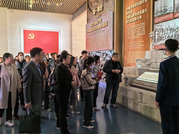 教师党员和统战人员赴中国共产党历史展览馆,以“学党史、强党性、敢担当、建新功”为主题开展党日活动。展览全方位、全过程、全景式、史诗般展现了中国共产党波澜壮阔的百年历程。老师们不时在珍贵的文物和图片前驻足观看,尤其是短片《长征》,使老师们身临其境、深受触动,很多老师热泪盈眶,被那一段不懈奋斗、艰苦卓绝的历史所感动和鼓舞。