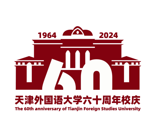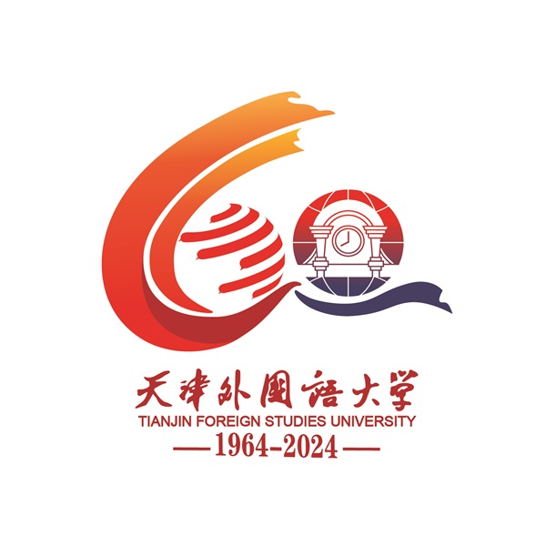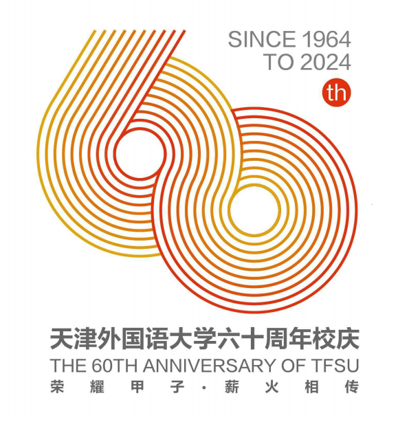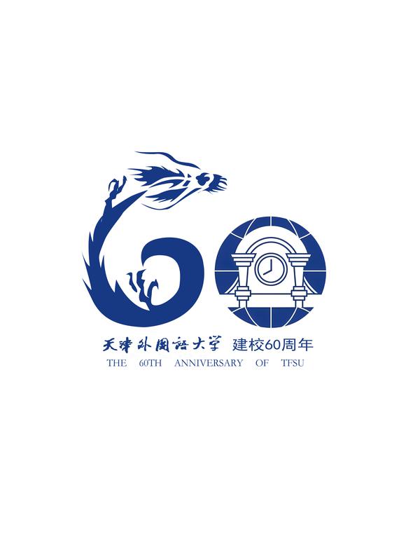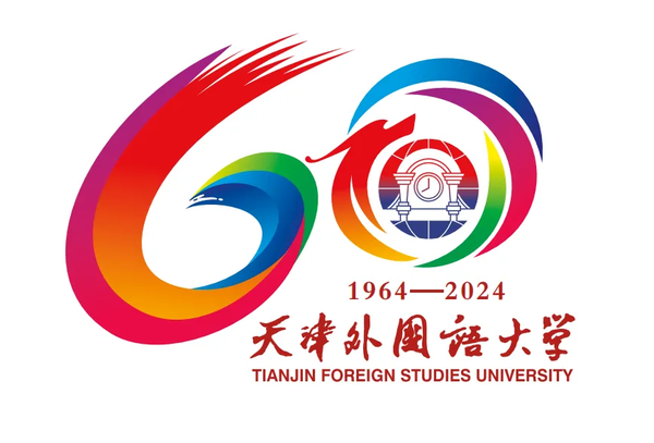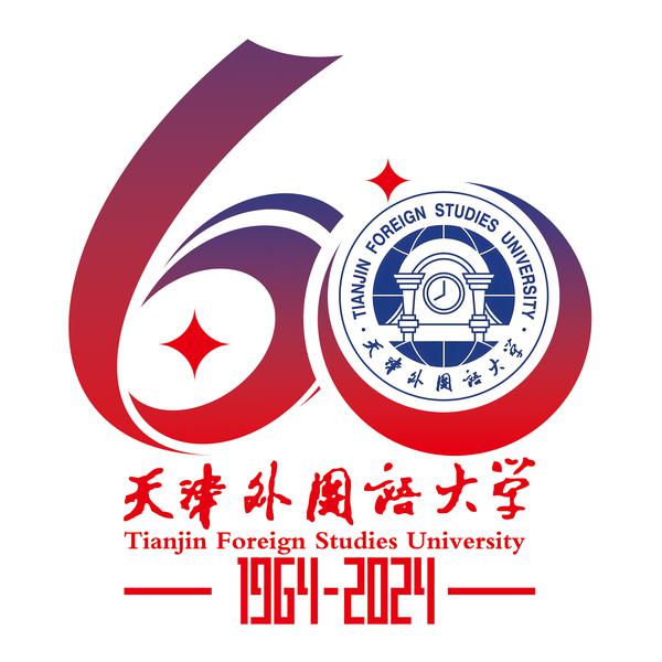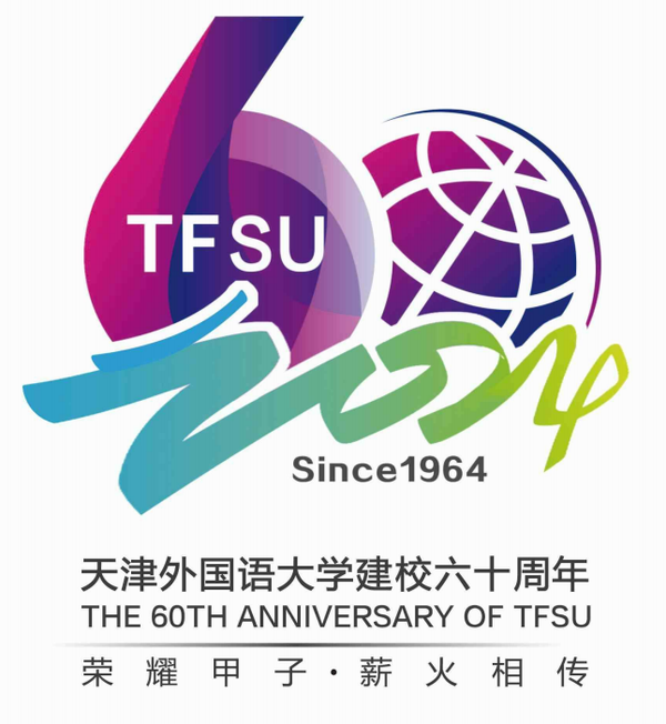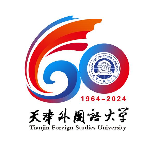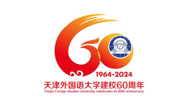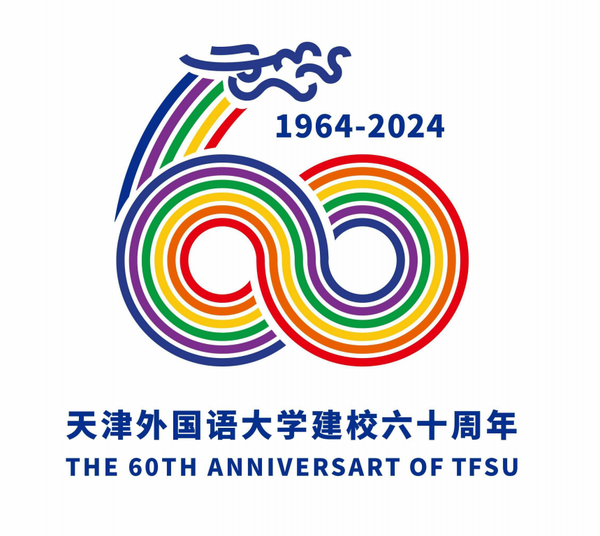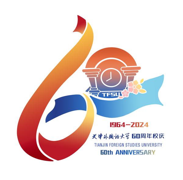 标识图案由红、黄、蓝、绿、紫五色渐变而成,整体协调饱满、色彩多元,象征着多元文化、多彩世界。数字“6”,形似浪花,朵朵汇聚,奔涌向前,既代表着学校坐落于美丽的渤海之滨天津,又象征着无数天外学子如“后浪”一般奔腾入海;数字“0”,宛若游龙,环绕校徽,向心汇聚,灵感来源于中华传统文化中龙形玉玦的神态。圆形校徽,以地球为背景,经纬交织,中间为学校标志性建筑------钟楼的造型。校庆标识承载了天外融通中外、走向世界、面向未来的信念,彰显了学校始终致力于用多种语言展示世界多元文化,用多元文化推动中外文明交流互鉴的使命和担当。
