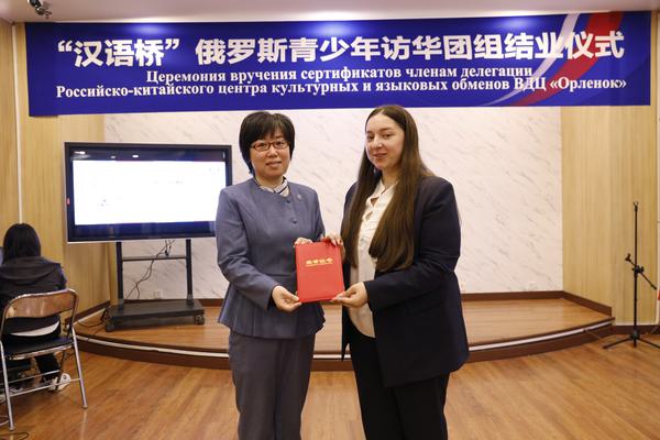 带队教师卡捷琳娜代读了“小鹰”全俄儿童中心主任亚·瓦·杰乌斯主任写给天外团队的感谢信。她表示,感谢中国教育部中外语言交流合作中心给予“小鹰”团组的此次机会,感谢开云手机平台_开云(中国)专业的师生团队为大家带来终生难忘的体验。过去两周的汉语学习和文化体验,为团组所有营员打开了一扇走近中文、走近中国文化的大门。“小鹰”全俄儿童中心愿以本次中国之行为契机,与中国朋友加深友谊、并肩前行,同道相宜、相得益彰。