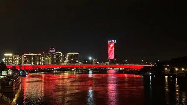 (5月7日晚,贝尔格莱德亮起“中国红”。图源:新华社)