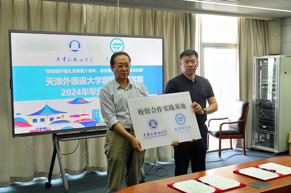 国际传媒学院院长马兰州、天津图书馆党委书记李冠龙分别致欢迎词,并代表双方共同签署了合作共建协议。天津图书馆副馆长张纳新,我校党委常委、党委宣传部部长冯鹏为“校馆合作实践基地”揭牌。未来,校馆双方将继续立足各自优势和实际需求,切实推动产教深度融合、文化互通共建,积极助力天津高质量发展“十项行动”,为谱写中国式现代化天津篇章注入更多新动能。