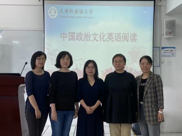 本课程2021年获评“天津市高校课程思政示范课程”,课程授课教师、团队被认定为天津市高校课程思政教学名师和教学团队。课程践行“内容+外语”融合式教学和“跨文化思辨”外语教学理念,以《习近平谈治国理政》英文版为主要教学材料,致力于推进习近平新时代中国特色社会主义思想进教材、进课堂、进头脑,同时最大限度地提高英语学习效能,培养能够深入了解认同中国政治文化,并能用英语传播当代中国政治文化故事的高素质、复合型、应用型人才。