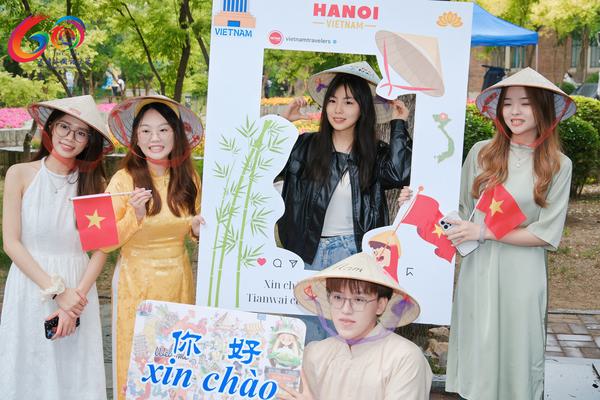 漫步在各个展位间,哥伦比亚的同学们热情地邀请游客们跳起昆比亚,尽显南美的热情奔放和舒畅欢愉;韩国同学用五颜六色的颜料打造的面部彩绘绚丽精致、让人迷乱双眼;日本同学和游客们一起折叠千纸鹤,寄予着浓浓的心想事成的美好愿望;贝宁的美食大大地满足了人们的味蕾,引得大家赞不绝口;哈萨克斯坦的传统服装试穿体验让人们仿佛置身广袤的大草原。琳琅满目的各国手工艺品、特色小吃,天津非遗文化体验区等彰显着不同的民族风情和文化内涵,吸引了游客们倾听、体验。现场特设的天外本科生、研究生招生宣传展位和留学生招生宣传展位前人头攒动,不少市民前来咨询交流。