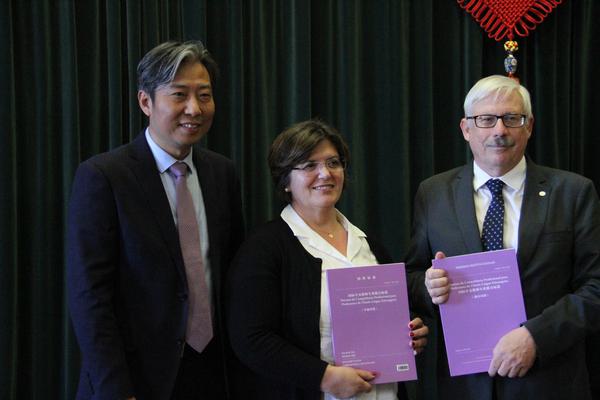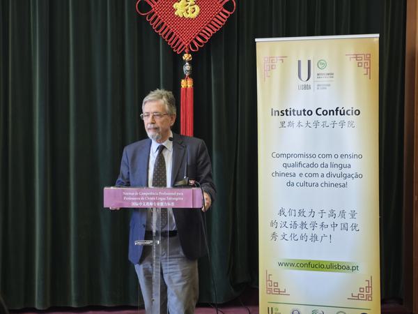 日前,由中外语言交流合作中心编写、里斯本大学孔子学院翻译的《国际中文教师专业能力标准》(中葡版)已由葡萄牙乌姆斯出版社正式出版。5月28日下午,本书的首发仪式在里斯本大学举行。中外语言交流合作中心主任郁云峰、里斯本大学副校长保罗·阿尔伯特、葡萄牙教育部中文项目负责人卢尔德·安德里诺、乌姆斯出版社社长路易·麦哲伦,在葡中文教师以及葡中教育界人士参加了本次活动。