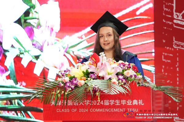 毕业生代表国际教育学院留学生玛丽娜发言